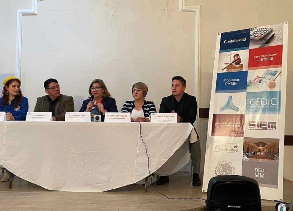 En la rueda de prensa participaron Laura Paula López, presidenta del Instituto Estatal de las Mujeres, Jhonatan Willian Vázquez Martínez, sub coordinador de Promotoría y Autonomía Empoderamiento del IEM, Jesús Chávez Zavala, presidente de Canacope y Catalina Domínguez Estrada, directora general de Canacope.