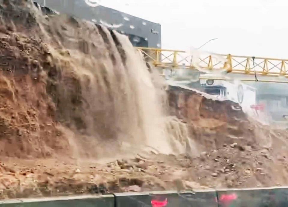 Todo se convirtió en un gran espectáculo porque el agua provocó una enorme cascada de lodo que afectó el carril de contraflujo recién habilitado por las autoridades en dirección al poniente.
