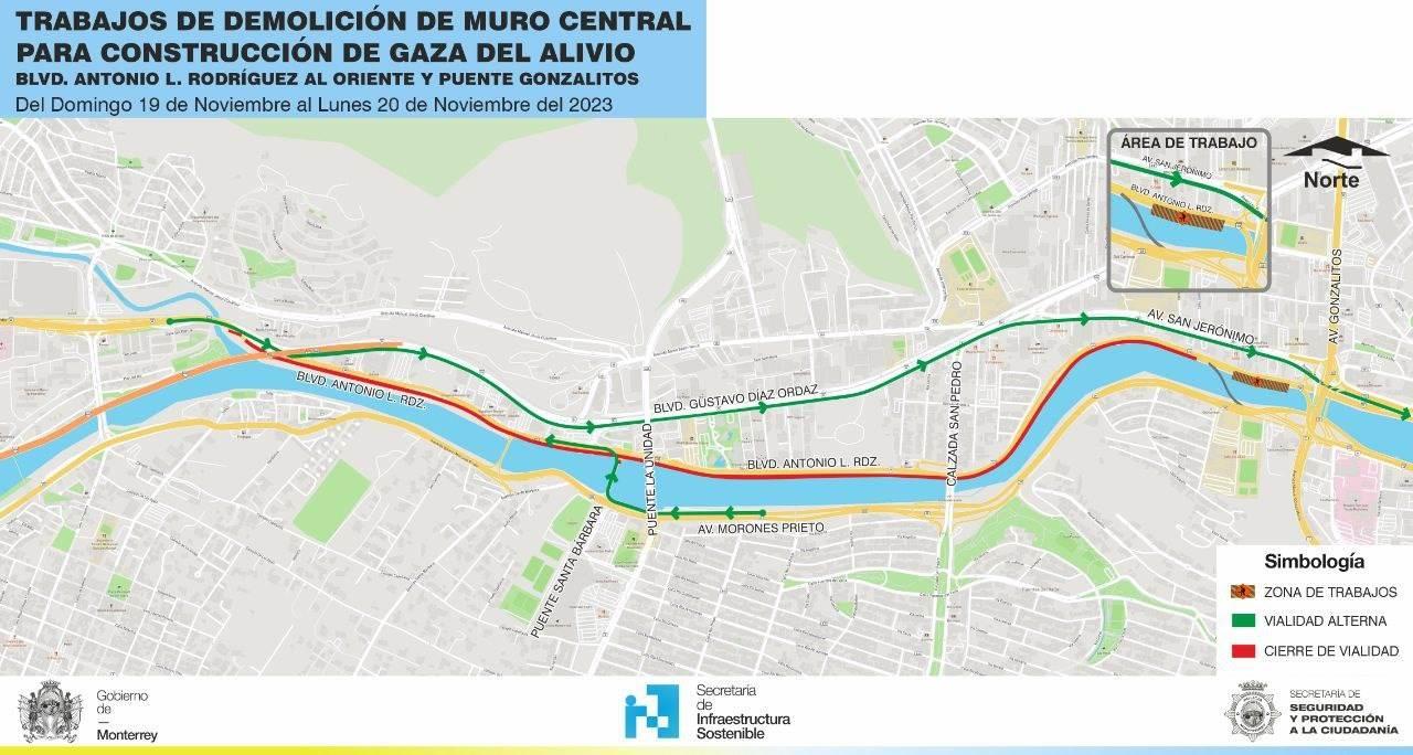 El tramo conocido como la ‘gaza del alivio’ en el bulevar Antonio L. Rodríguez, en los límites de Monterrey y San Pedro, cerrará durante 40 horas a partir de este domingo.