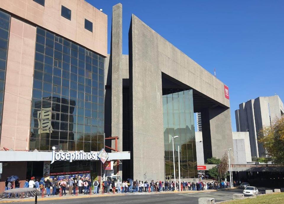 la fila de cuentahabientes abarca Zaragoza desde Matamoros, da vuelta en Padre Mier y le sigue por Escobedo