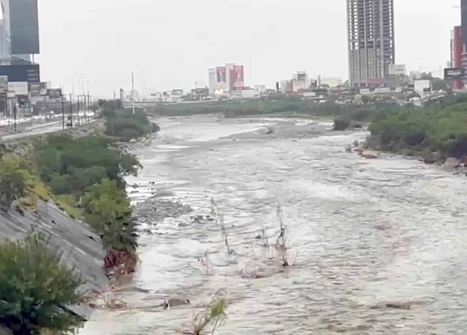 Crece en minutos por lluvias caudal del río Santa Catarina