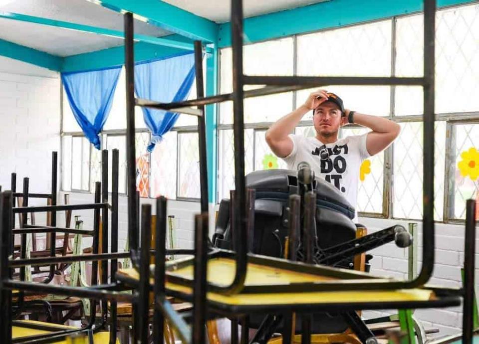 “Esta es una escuela que yo de muy chiquito veía seguido porque por aquí viví mucho tiempo…ahora estamos aquí dejándola bien al tiro, puro bancos nuevos”.