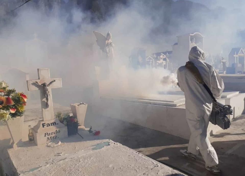 Los trabajos de limpieza y fumigación se realizan en los panteones municipales San Juan y Santa Catalina Mártir.