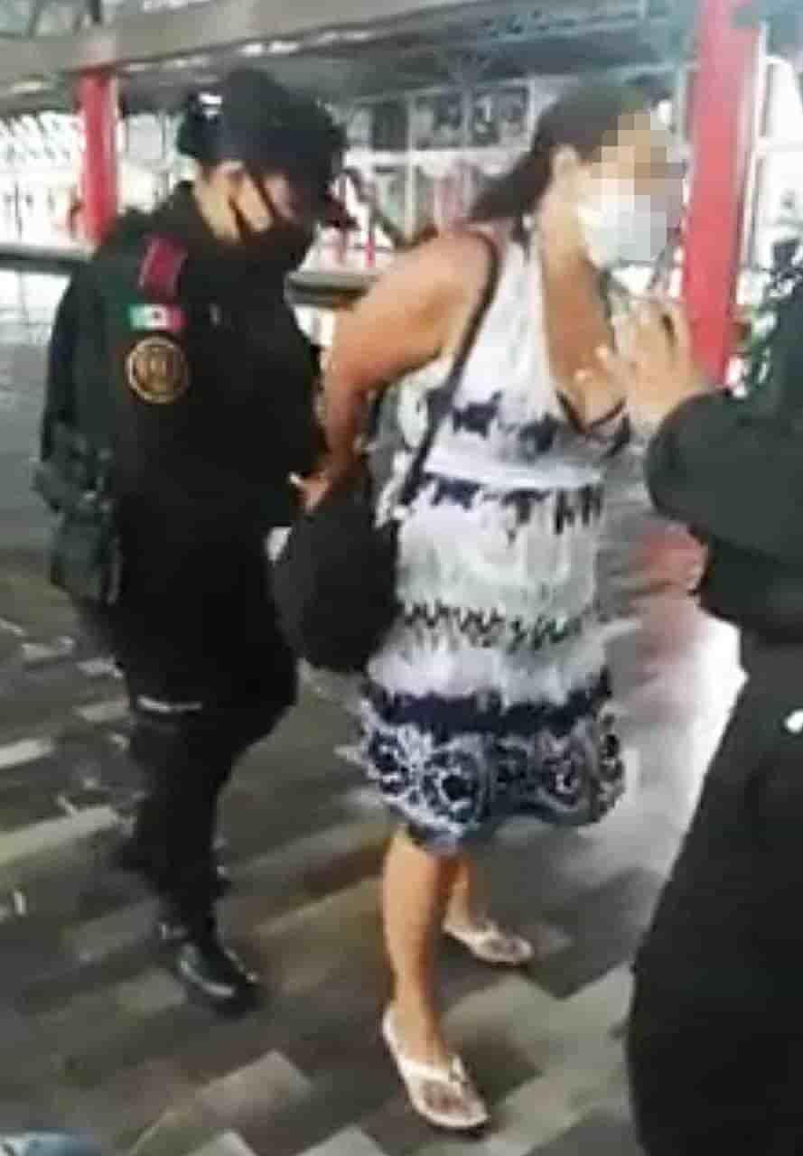Una mujer que no llevaba cubrebocas fue detenida en las instalaciones del Metro Cuauhtémoc por elementos de Fuerza Civil.