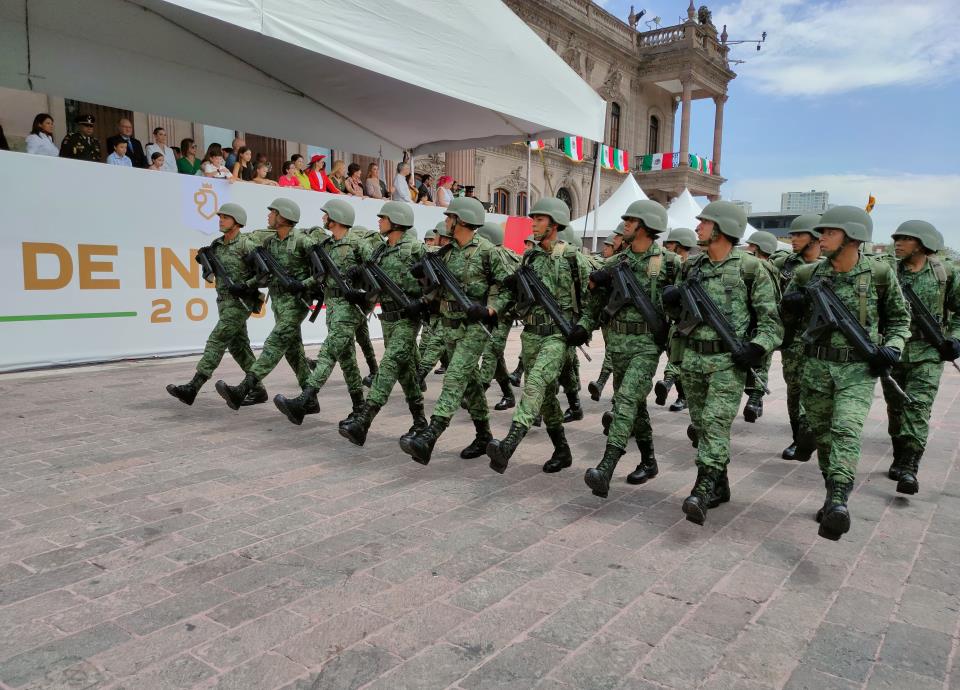 Previamente marcharon alumnos del Colegio de Bachilleres Militarizado “General Mariano Escobedo”, y el Pentathlon Deportivo Militarizado Universitario Zona Nuevo León.