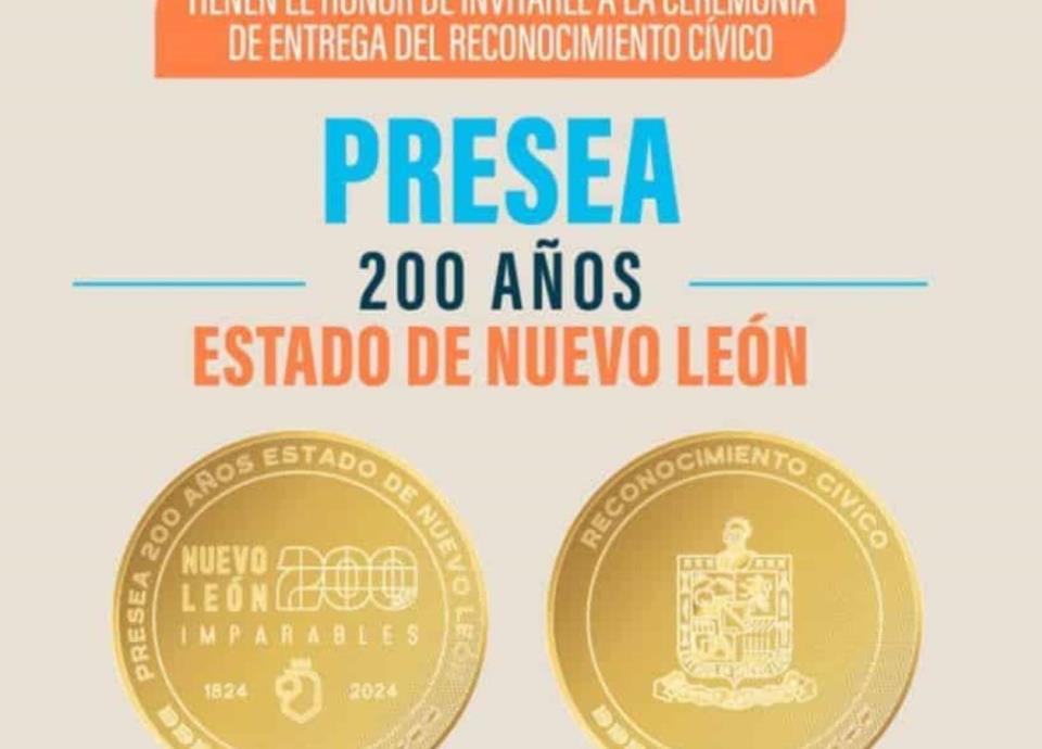 En el marco de las celebraciones por los 200 años de Nuevo León como estado libre y soberano, el Gobierno Estatal hará entrega del Reconocimiento Cívico Presea “200 Años, Estado de Nuevo León”.