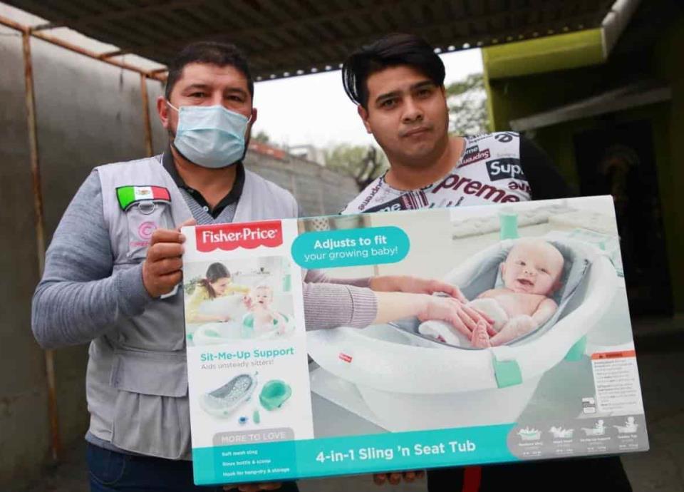 Vanessa Abigail Palacios y Scarlet Leos Ayala, dos de las madres de familia que recibieron una bañera para sus bebés, agradecieron que en tiempos difíciles recibir el apoyo que representa un gran alivio, puesto que no cuentan con los recursos económicos para adquirir estos productos.