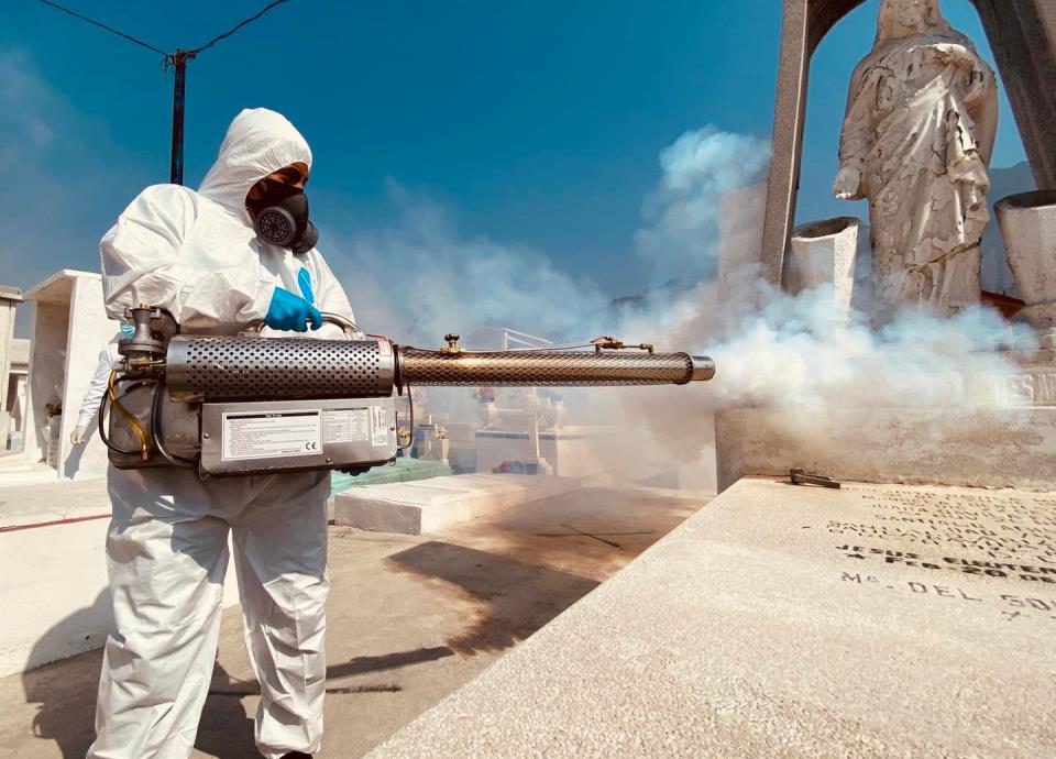 Las fumigaciones también se realizaron en los panteones San Juan y Santa Catalina Mártir para proteger la salud de los asistentes evitando casos del virus del dengue, chikungunya y zika.(AME)