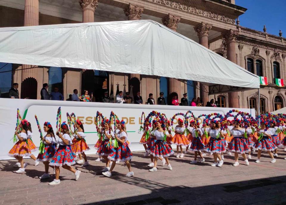 Con 63 contingentes, Javier Navarro, encargado del despacho del gobierno de Nuevo León, encabezó ayer el Desfile Cívico-Deportivo-Militar por el 113 Aniversario de la Revolución Mexicana.
