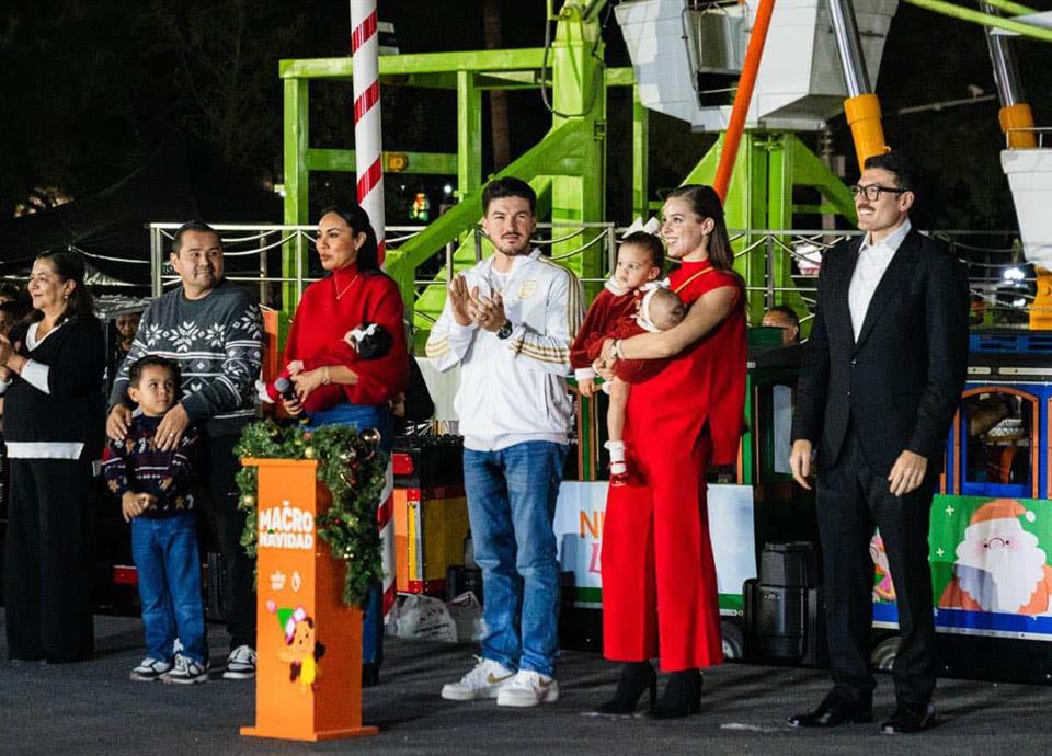 Instantes después, junto a sus hijas Mariel e Isabel, subieron a la rueda de la fortuna y recorrieron espacios temáticos como la Oficina Postal, la Casa de Santa, la Estación del Tren, el Túnel de Caramelos, el Carrusel, el Taller de Santa y el Mercado Nuevo León, acompañados por duendes que convivieron con las familias asistentes.