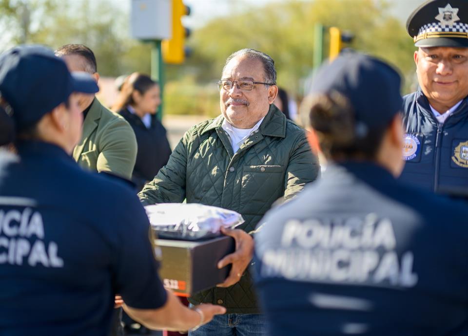 La entrega del equipamiento estuvo encabezada por el Alcalde Andrés Mijes, quien estuvo acompañado por Omar Amador Escobar, Comisionado de la Secretaría de Seguridad y Protección Ciudadana y Marco Antonio Zavala, Secretario de Seguridad Ciudadana.