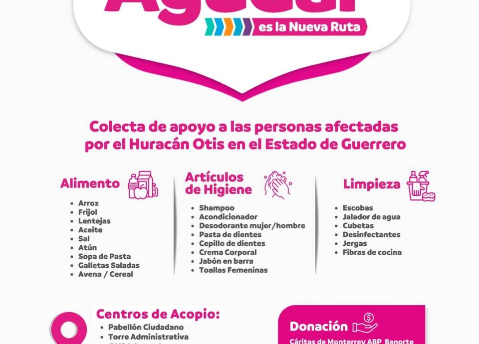 Los apoyos se recibirán en la Red de Centros Comunitarios, CAIPAS, DIF Nuevo León, Torre Administrativa y Pabellón Ciudadano.
