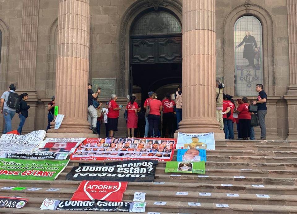 Teniendo como marco el Día Internacional de las Personas Desaparecidas, más de una decena de madres y familiares colocaron mantas y carteles con leyendas referentes a sus casos.