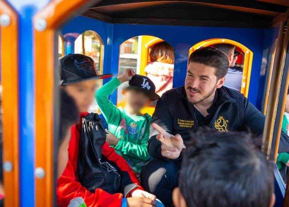 De visita en el Campo Policial No 1, en Escobedo; el mandatario estatal encabezó la llegada de la Magia de la Navidad con rifa y cientos de regalos.