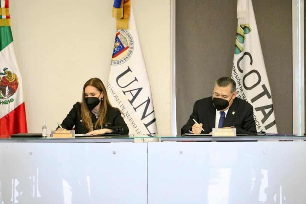 El anuncio se hizo durante la firma de un convenio entre la Universidad y la Comisión de Transparencia y Acceso a la Información del Estado de Nuevo León, documento suscrito por Santos Guzmán López y la Comisionada Presidenta de la COTAI, María Teresa Treviño Fernández.
