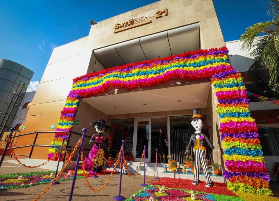 Preservando y fomentando la cultura y tradiciones mexicanas, la Directiva Sindical de la Sección 21 del Sindicato Nacional de los Trabajadores de la Educación monto un altar de muertos.