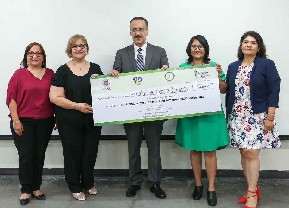 Los ganadores del concurso fueron acreedores de un cheque de 50 mil pesos, dinero que se obtuvo a través de campañas de reciclaje electrónico y se entregó en presencia de Sergio Fernández Delgadillo; Evangelina Ramírez Lara, directora de la Gestión Ambiental y Seguridad Operativa de la Secretaría de Sustentabilidad de la UANL; Yolanda Araceli Gracia Vásquez y Mónica María Alcalá Rodríguez, subdirectora administrativa y subdirectora académica de ingeniería química e ingeniería ambiental de la Facultad de Ciencias Químicas; así como Sandra Pioquinto García, en representación del equipo ganador.