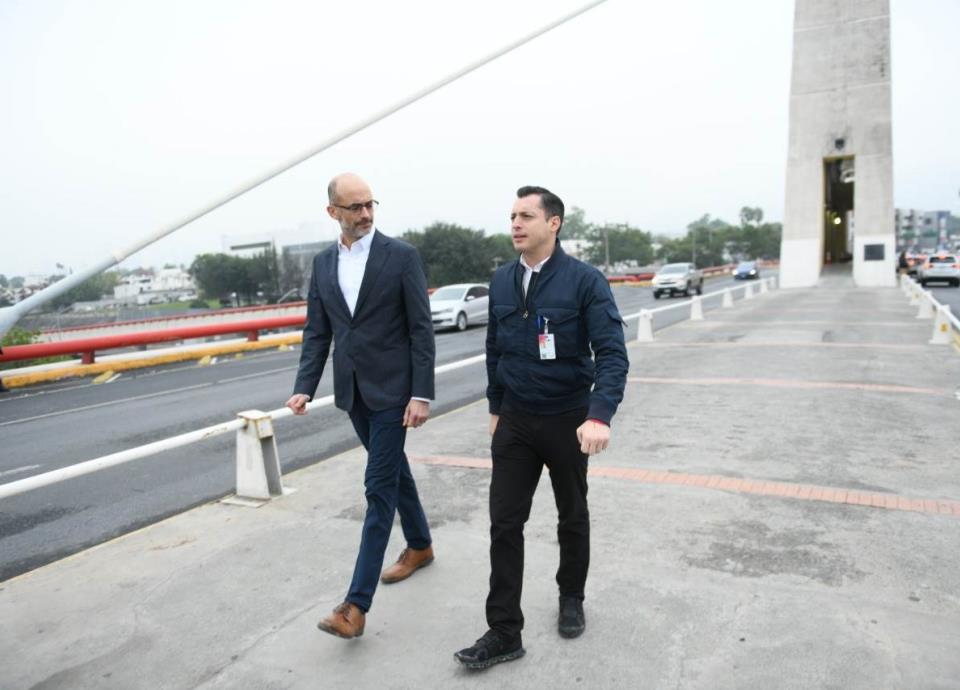 Los Presidentes Municipales Luis Donaldo Colosio y Miguel Treviño de Hoyos, se reunieron en un área peatonal del puente que conecta a ambas ciudades, para empezar con la intervención en los 26 tensores, así como labores de pintura y mantenimiento general.