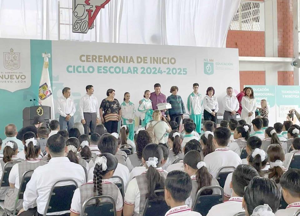 En la Escuela Secundaria 50 “José Vasconcelos”, en la colonia Primavera; el gobernador Samuel García Sepúlveda encabezó el arranque del Ciclo Escolar 2024-2025.