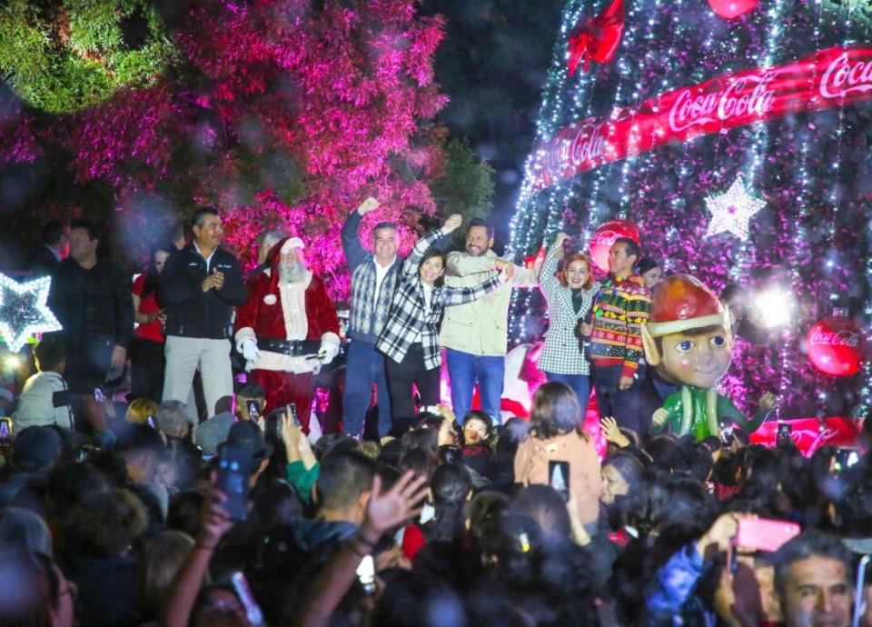 Cristina Díaz Salazar, alcaldesa de Guadalupe y Tomás Montoya, Presidente del DIF, encabezaron el acto navideño que incluyó el inicio del desfile Coca Cola, que partió del Centro de Guadalupe y concluyó en el sector Agua Nueva.