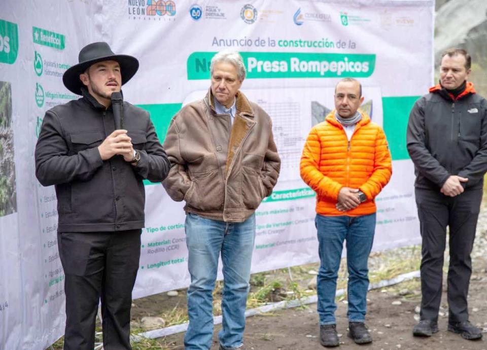 “Vamos rumbo a La Huasteca al inicio de la presa rompepicos dos, estuvimos en el (huracán) Alex a nada de que se llevara el centro de la ciudad; hoy de manera responsable y contundente vamos a meterle 700 millones de pesos para salvaguardar la seguridad hídrica de la ciudad de Monterrey”.