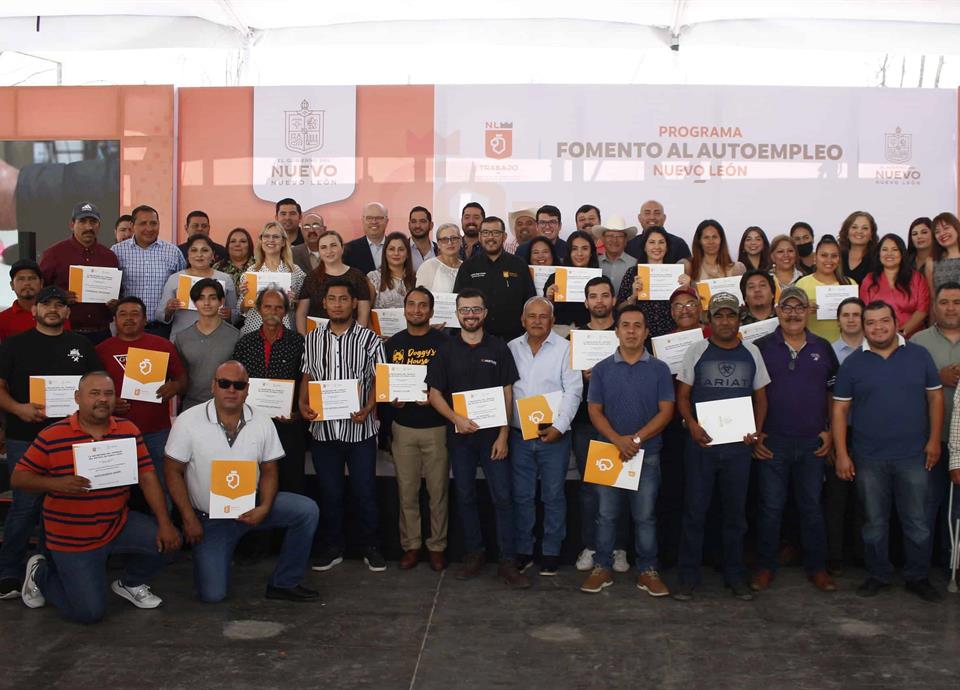 En Fomento al Autoempleo, el Gobierno de Nuevo León entregó el acta de propiedad y facturas de mobiliario y herramientas a beneficiarios de 58 proyectos productivos exitosos a través de una inversión de más de 3 millones 648 mil pesos.