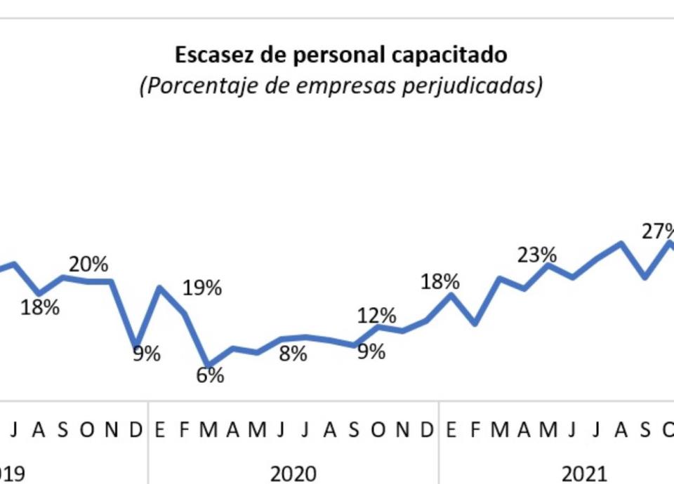 Los puestos donde hay mayor escasez de personal capacitado, según la industria,son los técnicos especializados con un 28 por ciento, operadores generales un 26 por ciento, vendedores y operadores de máquinas un 11 por ciento en ambos.