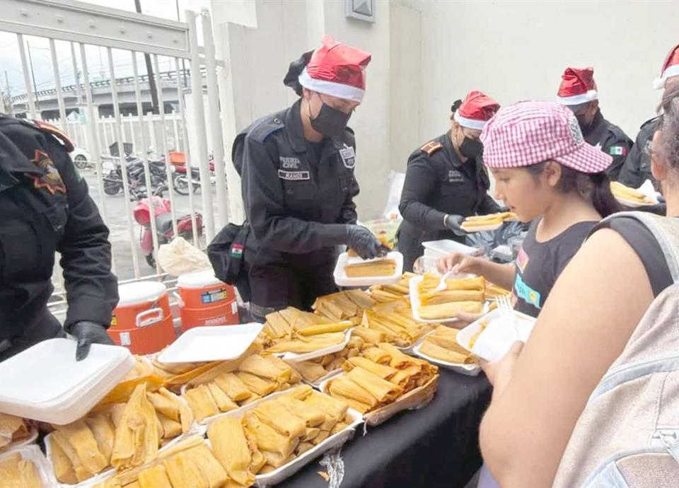 Más allá de su tarea de garantizar la seguridad y protección de la ciudadanía durante los festejos decembrinos; los efectivos sirvieron la mesa.