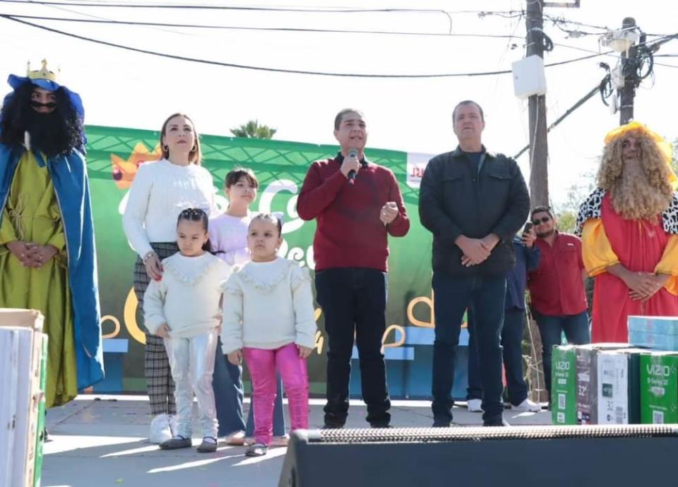 El Alcalde Francisco Treviño y su esposa Adriana de la Garza dieron arranque a los festejos desde el miércoles en los centros polivalentes de las colonias Los Puertos y Vistas del Río, donde partieron megarroscas y entregaron juguetes a los pequeños que salían afortunados con una figura escondida en su rebanada de pan.