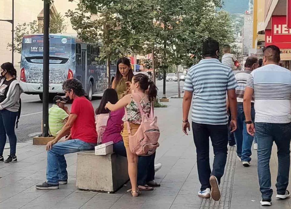 Monterrey, NL.-Tras el levantamiento de restricciones a embarazadas y el aumento de aforos en establecimientos, el primer cuadro de la ciudad lució abarrotado este fin de semana.