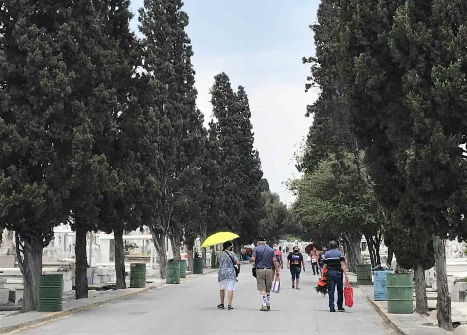 Considerando las altas temperaturas y al ser un día laboral, familias regiomontanas acudieron en menor cantidad este lunes a los panteones El Carmen y Dolores.