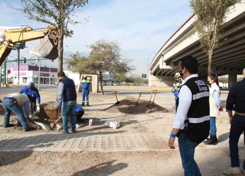 Castillo supervisó la plantación de encinos verdes en el camellón central del Bulevar Díaz Ordaz y Juárez, en la Colonia La Fama, donde además se realiza el mantenimiento de los árboles que ya estaban en la zona.