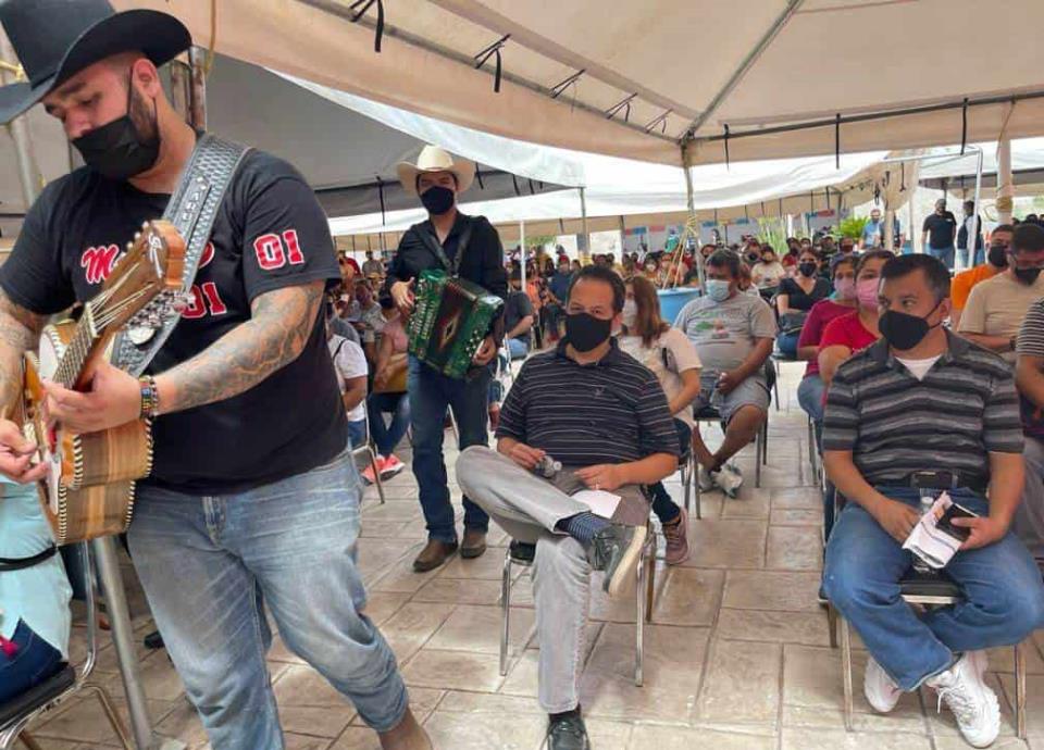 En los dos centros de vacunación referidos, también inocularon a mujeres embarazadas y personas en rezago de 50 años en adelante, en medio de canciones interpretadas por el dueto “Fara Fara Bravos” con Adrián Rodríguez en el bajo sexto y Norberto Olvera en el acordeón.