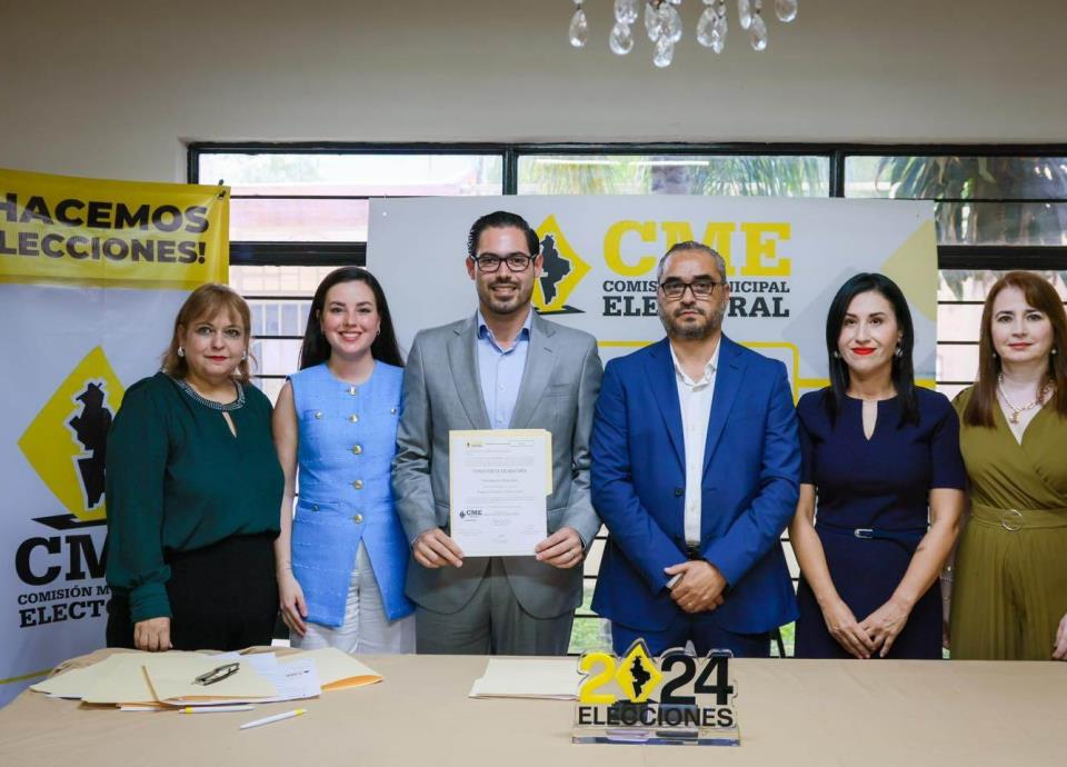 La Comisión Municipal Electoral entregó a David de la Peña Marroquín el documento que lo acredita como Alcalde electo de Santiago para continuar tres años más al frente del municipio en el periodo 2024-2027.