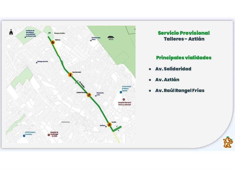 Durante este lapso de tiempo, se contará con Transmetro en los circuitos Exposición-Cuauhtémoc, y Aztlán-Talleres.