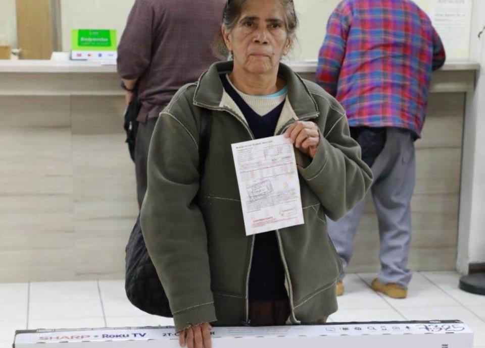 Por su pago “tempranero”, María Florinda recibió un premio del Municipio.