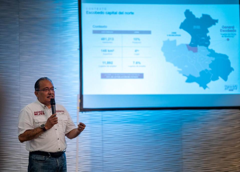Ante miembros de la CAINTRA, el candidato de Morena a la alcaldía de Escobedo, Andrés Mijes Llovera, enunció sus propuestas, entre las que destacó las acciones con las que impulsará el desarrollo comercial e industrial en Escobedo.