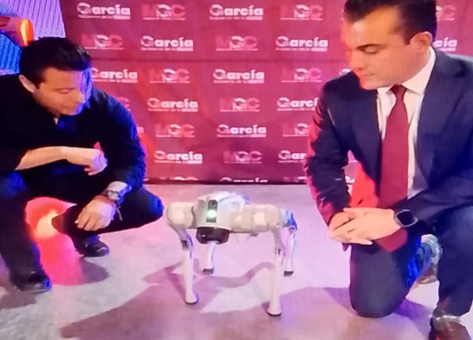 El alcalde de García, Manuel Guerra presentó al elemento K9 robotizado que se incorporó a partir de este martes a la Secretaría de Seguridad Pública para misiones específicas.