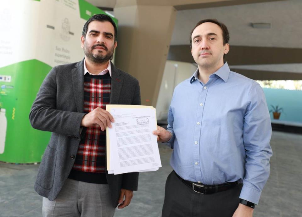 El dirigente estatal de Acción Nacional, Hernán Salinas Wolberg, acompañado del diputado local, Mauro Molano, presentaron una serie de observaciones al proyecto de cambios al Reglamento de Participación Ciudadana del municipio de San Pedro.