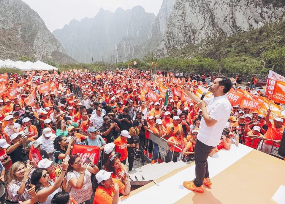 Al pie de La Huasteca, destacó y calificó el modelo de buen gobierno de Samuel García, y adelantó que todos los avances en la entidad, como liderar a nivel nacional la atracción de inversiones del nearshoring, dignificar el transporte público, garantizar la atención de salud a niñas y niños con cáncer.