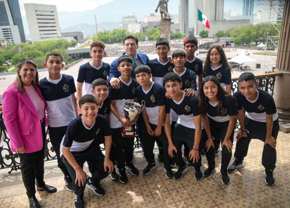 El gobernador Samuel García Sepúlveda recibió ayer a los niños campeones del torneo Desafío Mundial Madrid 2023, a quienes prometió becas, llevarlos a una pelea del “Canelo” Álvarez, y hasta un vehículo Tesla.