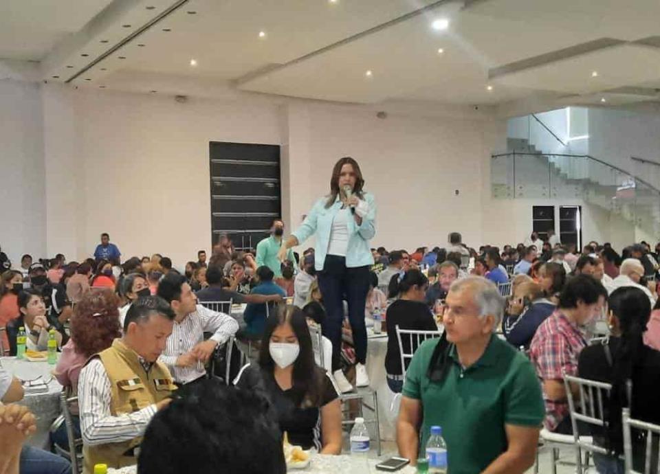 Clara Luz Flores, promovió ante militantes de Morena la recolección de firmas para que se pueda realizar la consulta popular de la revocación de mandato