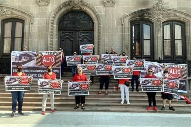 “Sí al metro subterráneo en Miguel Alemán, no al Metro elevado”, eran parte de las consignas que decían las personas manifestantes.