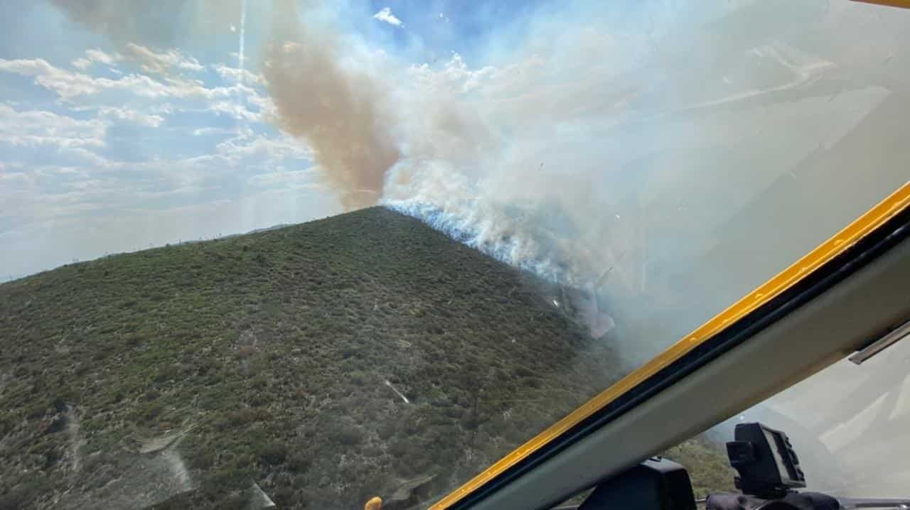 “La brigada Fénix de Protección Civil Nuevo León continúa esta mañana labores para el control y combate al incendio forestal que se registra en Puerto Acapulco, Galeana”.