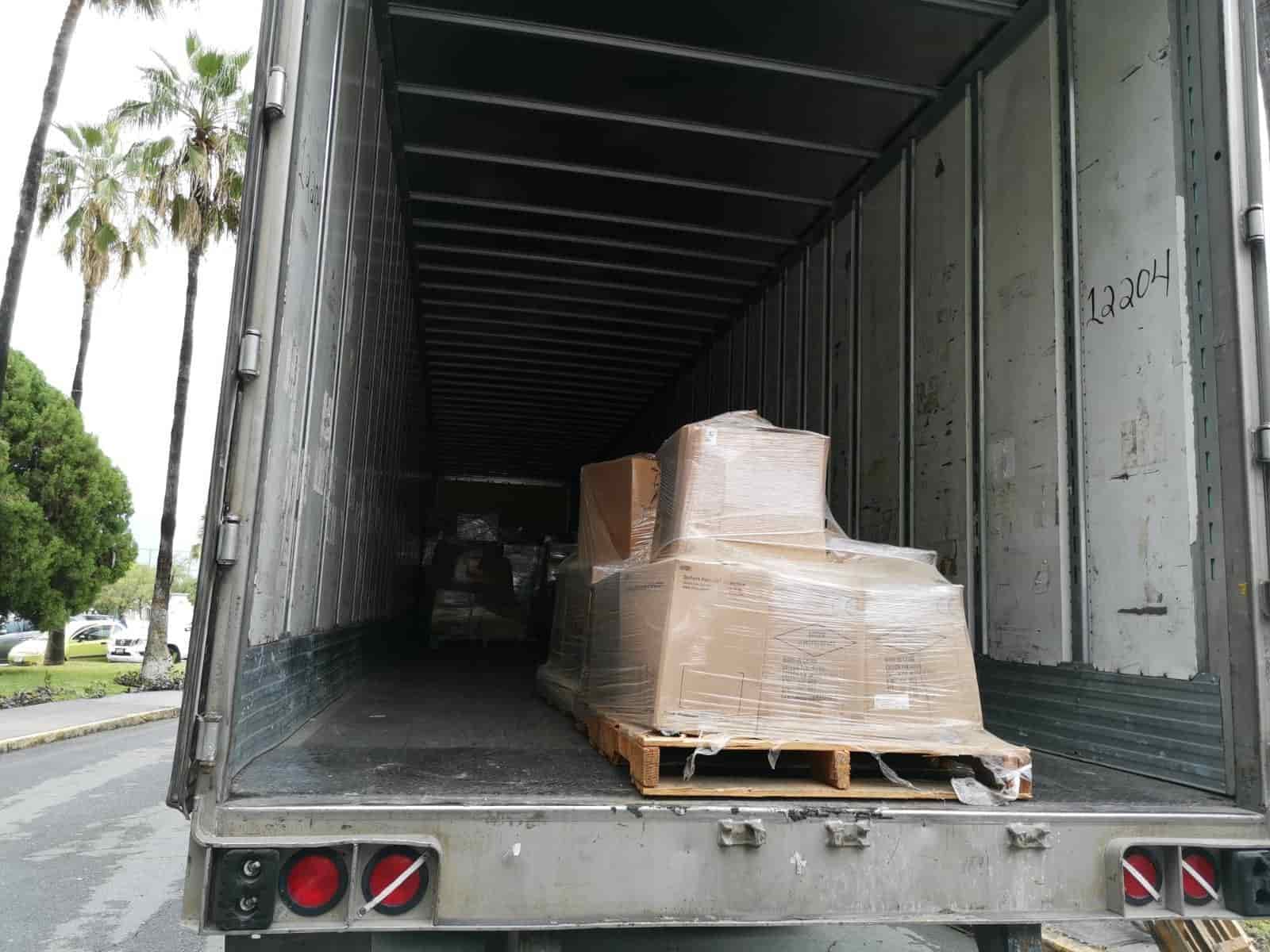 Procedente desde Texas, el Hospital Universitario recibió un camión de insumos médicos, con un total aproximado de 1,500 piezas entre caretas, guantes, cubrebocas, mascaras y demás equipo médico.