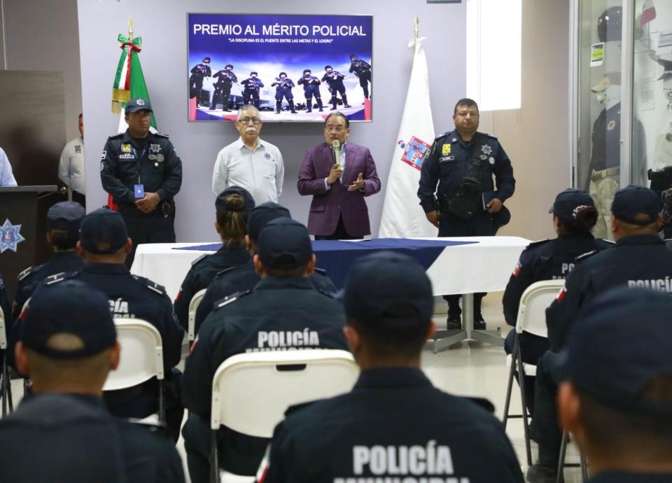 El Premio al Mérito Policial se entrega cada bimestre a elementos que participaron en acciones excepcionales o relevantes como el aseguramiento de armas, drogas o vehículos, así como en la detención de delincuentes y personas de organizaciones criminales.