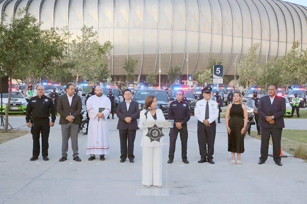 En el acto efectuado en el Estadio de los Rayados, Cristina Díaz, reconoció a la Policía de Guadalupe por el desempeño y los resultados alcanzados desde el inicio de la administración, posicionándose como la corporación con mayor número de detenciones por delitos en Nuevo León.