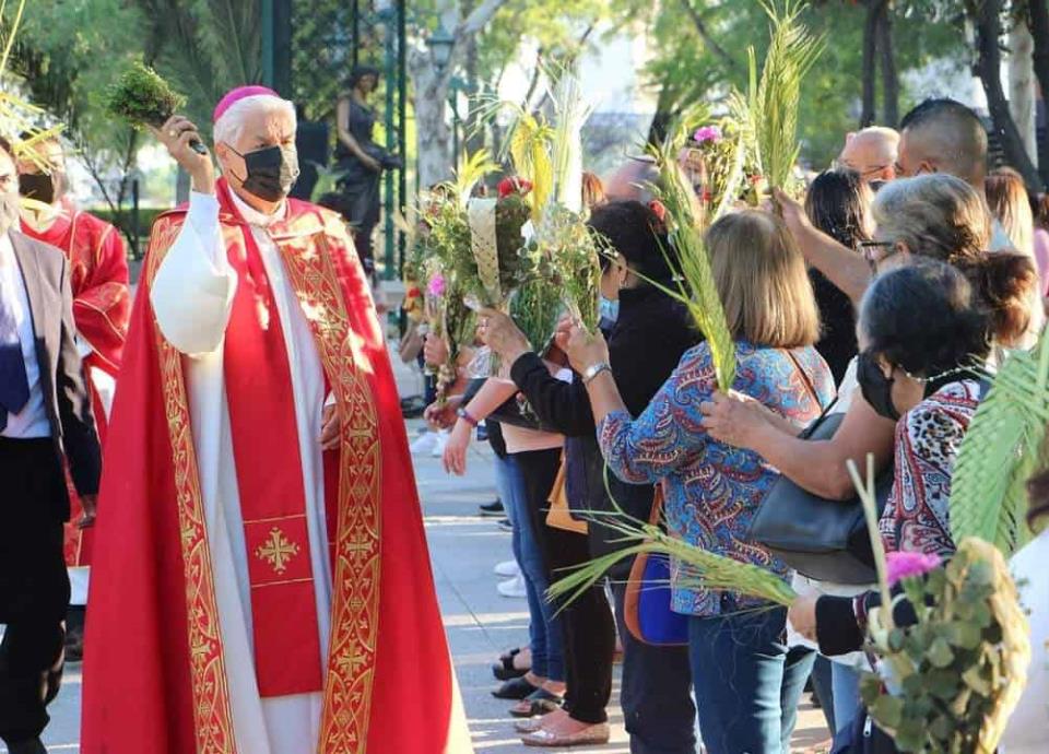 Minutos después del primer mensaje en referencia al pasaje de la entrada triunfal de Jesús a Jerusalén, Cabrera López continuó con la bendición de los ramos, para posteriormente dirigirse al interior de la catedral y continuar con la celebración eucarística.