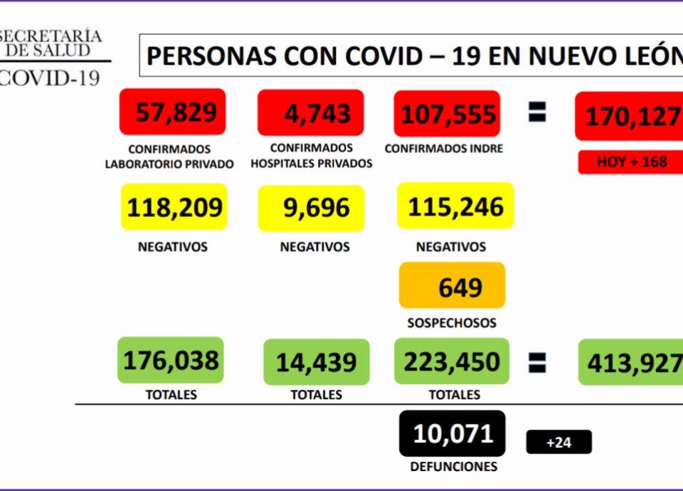Registra NL 168 nuevos casos de Covid-19