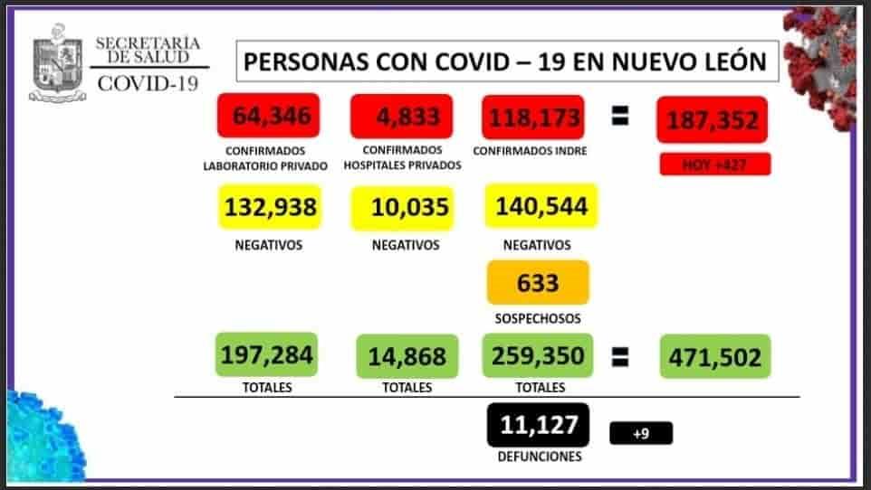 Aunado a ello, se presentaron 9 defunciones, en las últimas 24 horas, con lo que suman 11 mil 127 muertes por Covid-19 en lo que va de la pandemia.